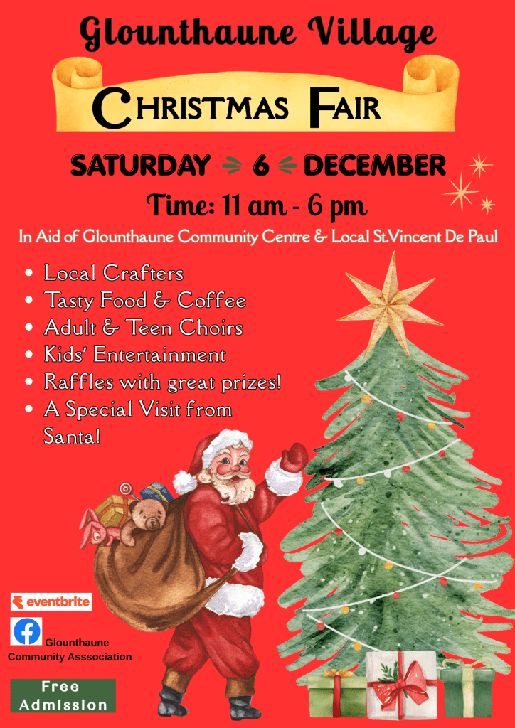 We are delighted to present our annual Christmas Craft Fair in Glounthaune Community Centre.